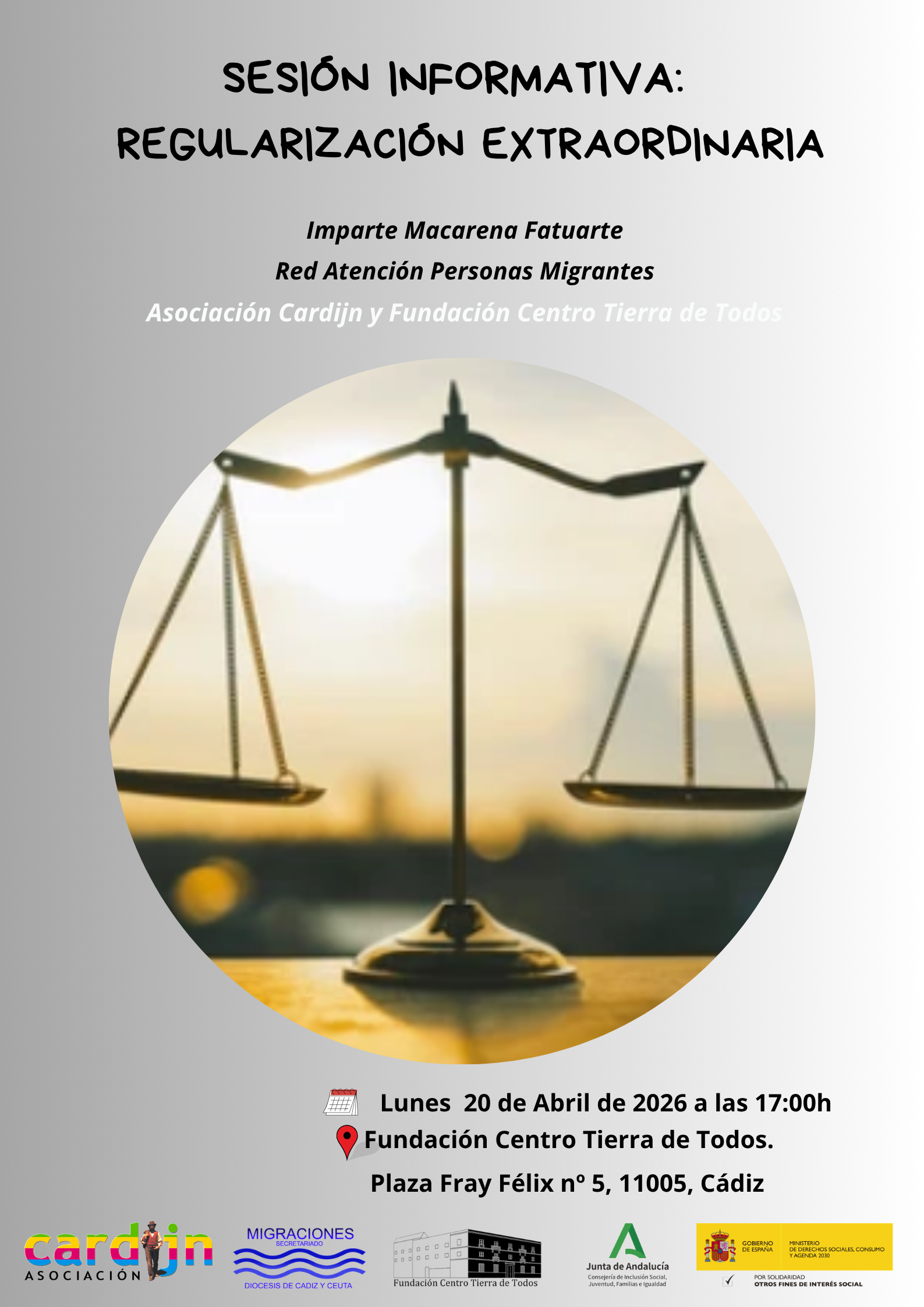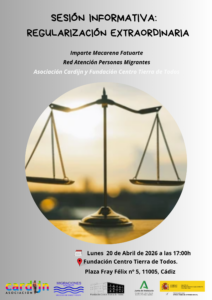 👉SESIÓN 2: LUNES 20/04/2026 A LAS 17:00H en la FUNDACIÓN CENTRO TIERRA DE TODOS-Pza Fray Félix nº5-Cádiz.